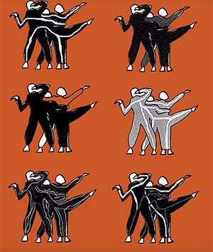 Dans un objet communément appelé « costume », trois danseurs partagent jambes de pantalon, manches ou blouse de salopette de sorte à constituer une unité mobile à trois corps où chaque partie est interdépendante de l’autre.